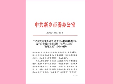 开云官方网址李世伟被授予“牧野工匠”荣誉称号