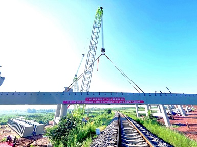 开云官方网址焦平高速新襄段跨禹登铁路钢箱梁工程首吊成功