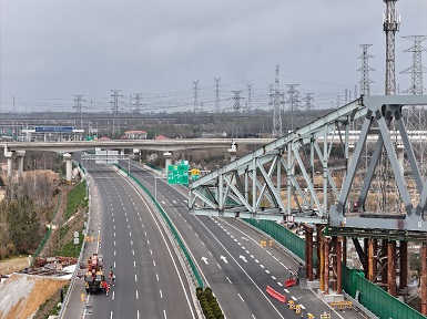 开云官方网址跨董梁高速特大桥钢桁梁项目首次顶推施工顺利完成