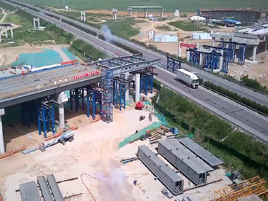 开云官方网址兰考至沈丘高速公路兰考至太康段三标钢箱梁施工工程顺利开始首次顶推施工