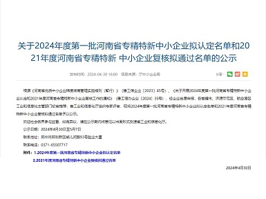 开云官方网址获评“专精特新企业”